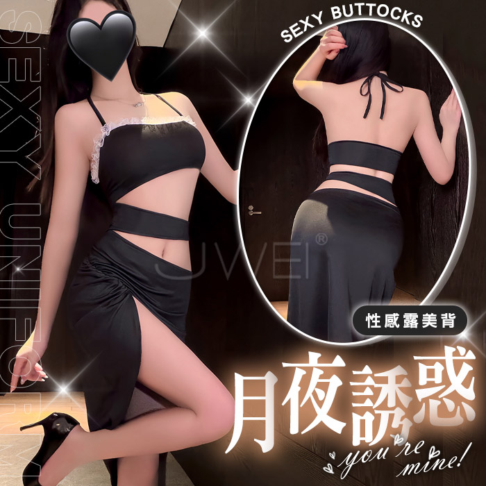 禁欲教官.鏤空U型露乳後綁帶蝴蝶結美背包臀調教服【連身裙+T褲】