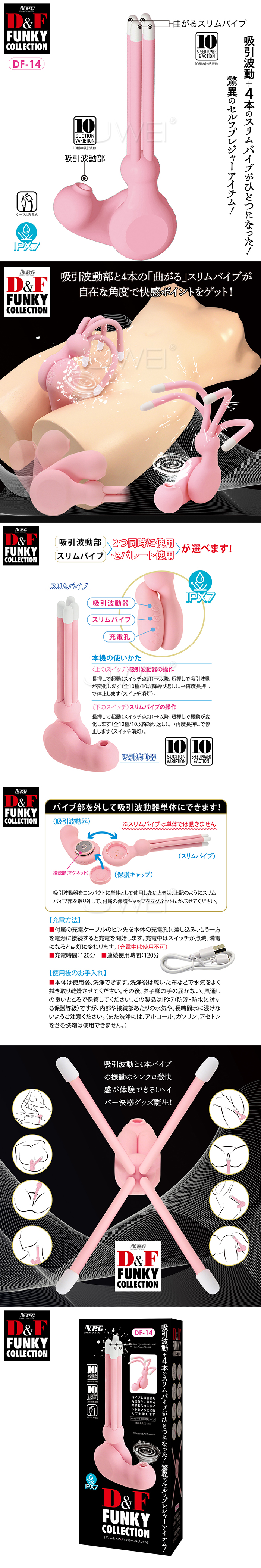 日本原裝進口NPG.D&F FUNKY COLLECTION 10x10頻吮吸強震異形觸手跳逗器【DF-14】