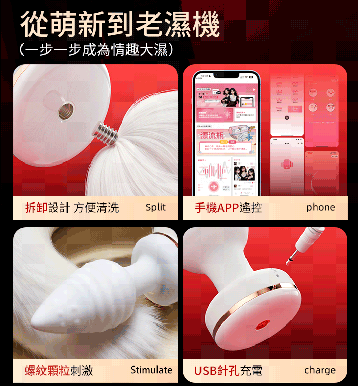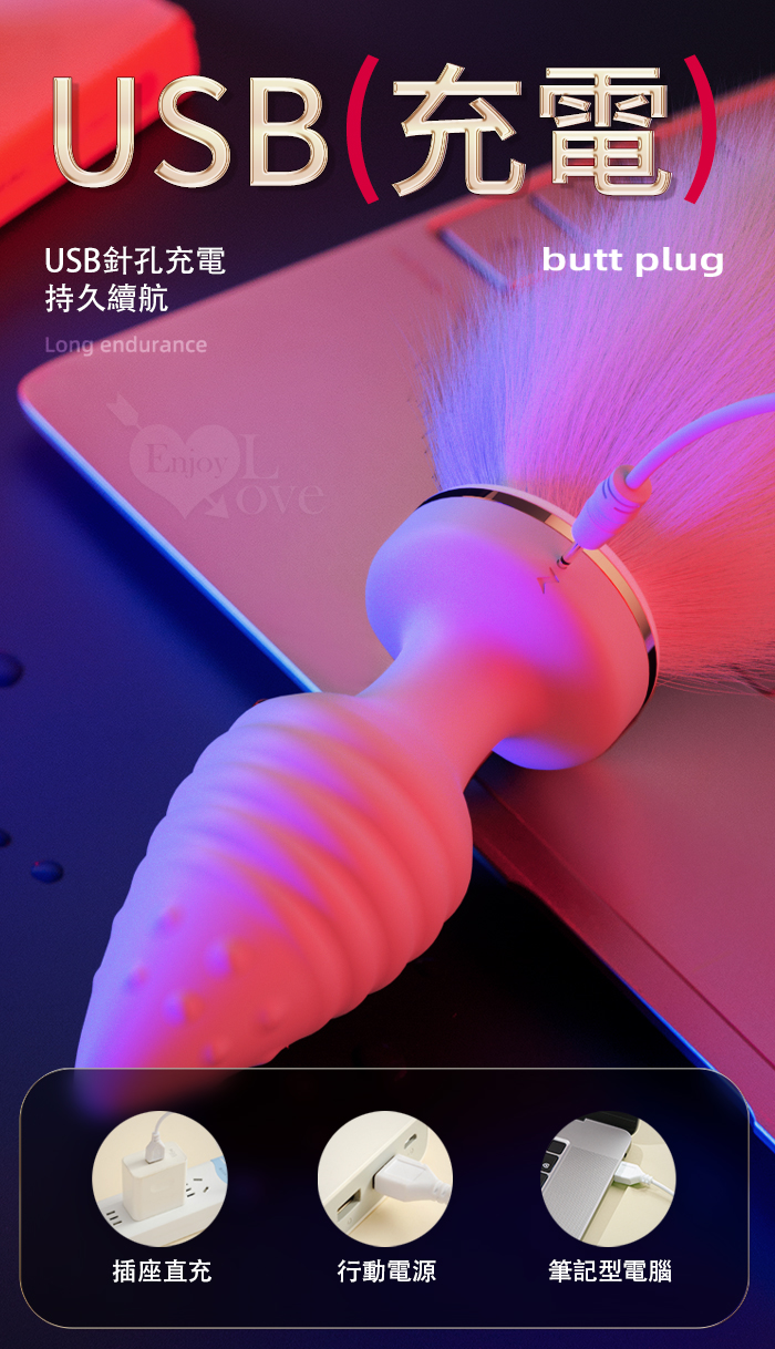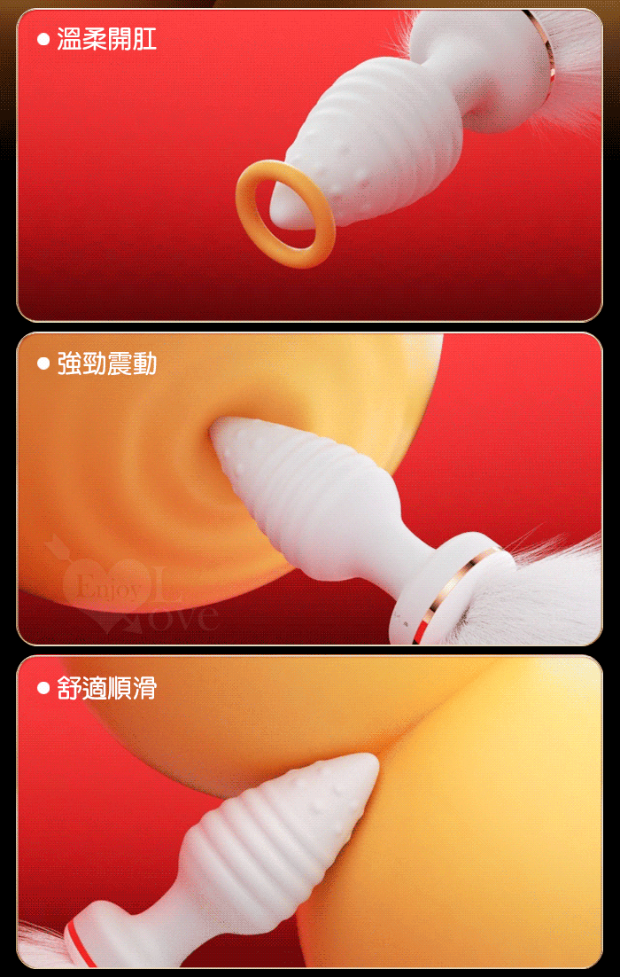 ROSELEX 勞樂斯 ‧ 狐尾 激性扮演親膚矽膠後庭肛塞 10頻震動/螺紋顆粒刺激/兩種操控模式﹝可手機APP遙控﹞