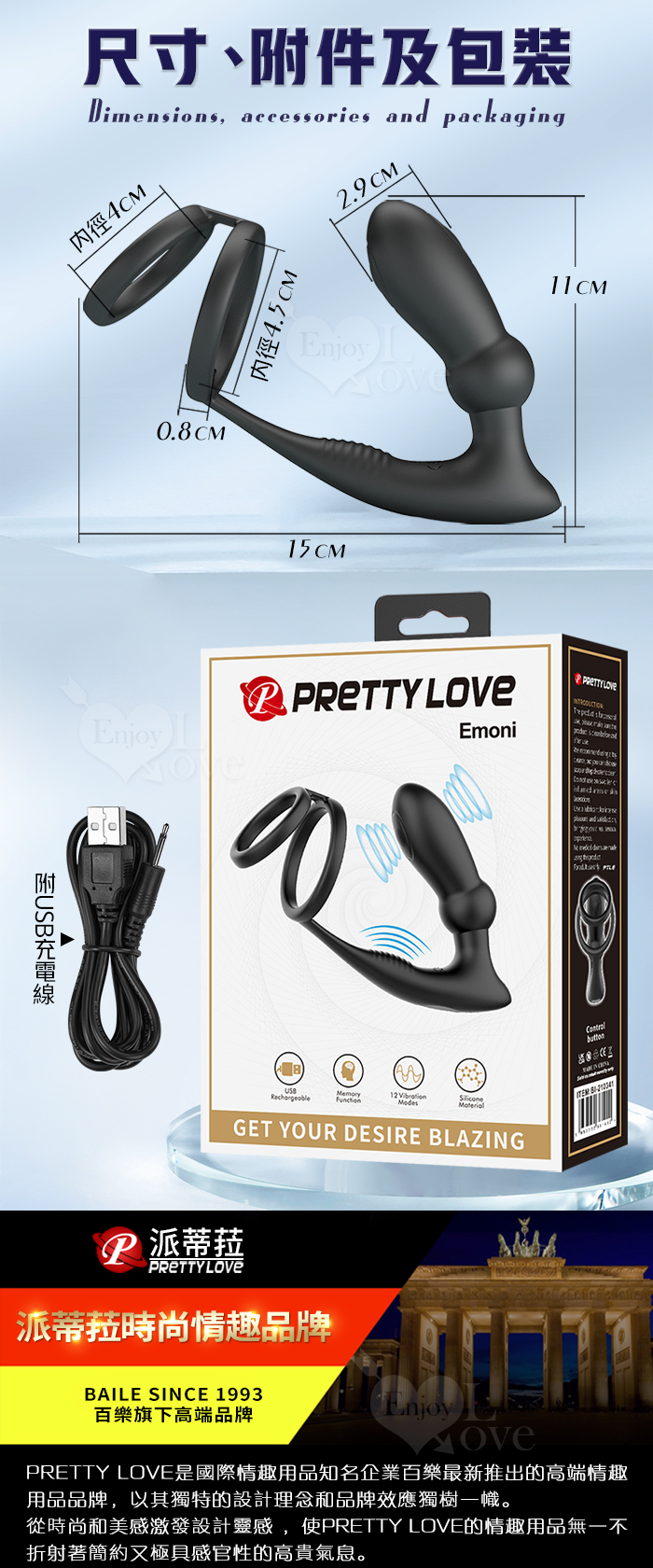 派蒂菈 ‧ Emoni 艾莫尼 內外進擊12頻鼓動x12強震前列腺後庭按摩器﹝雙環鎖精+親膚矽膠+智能記憶﹞