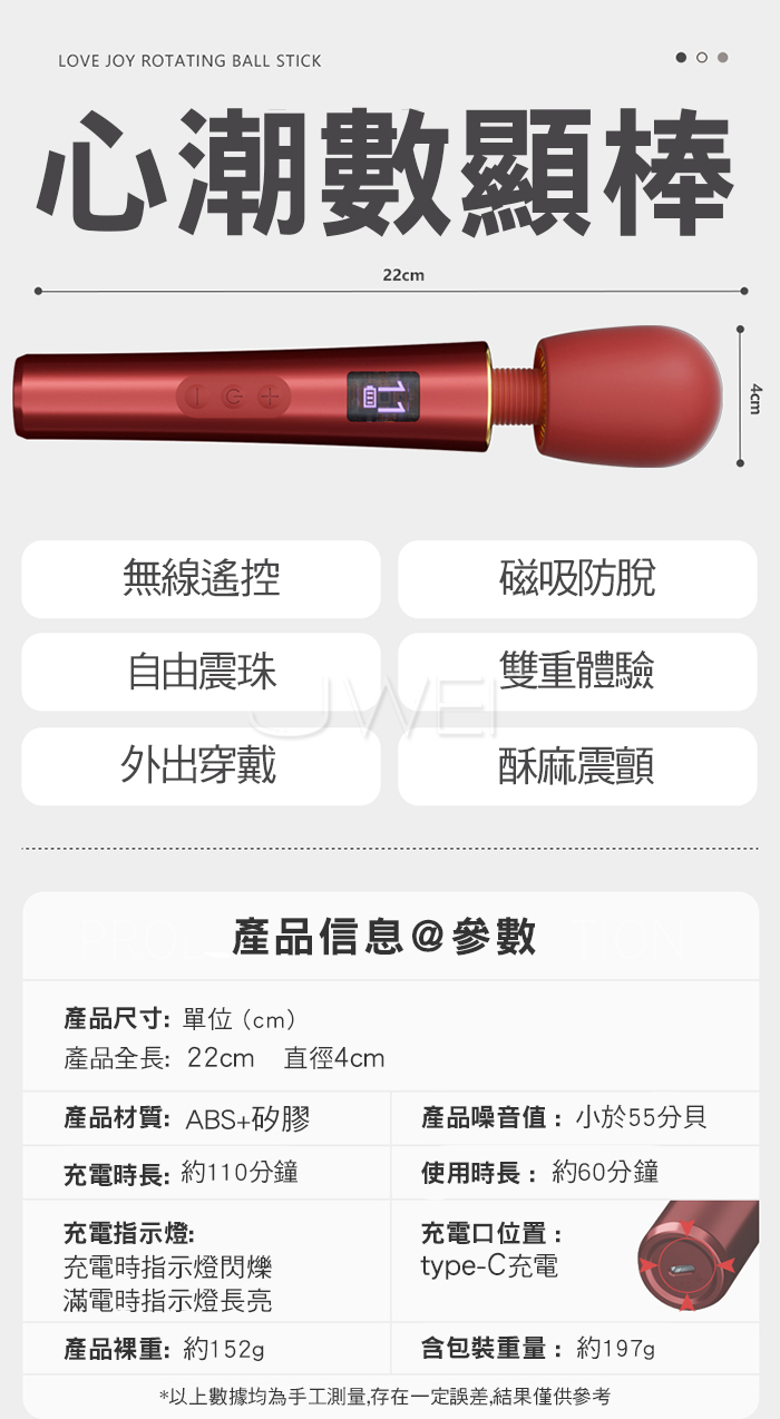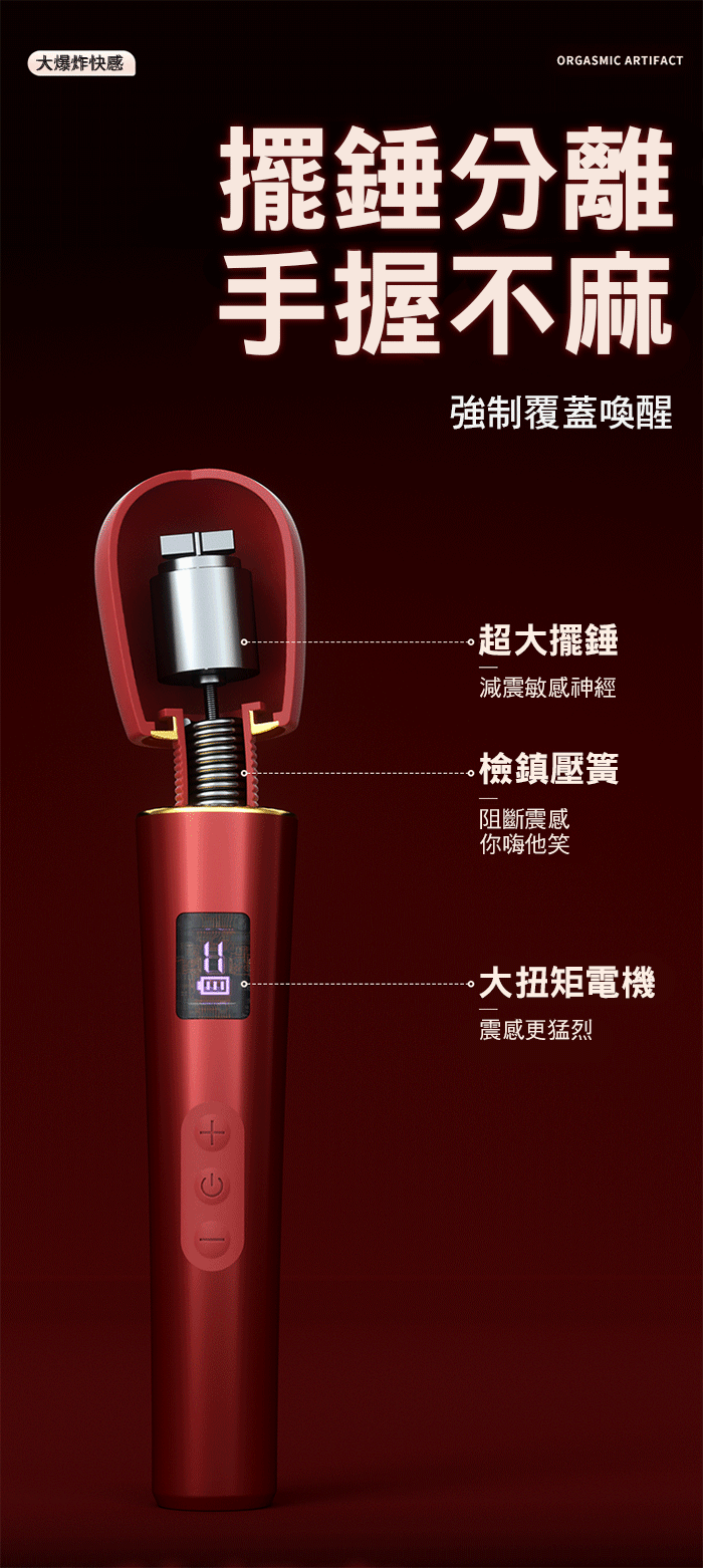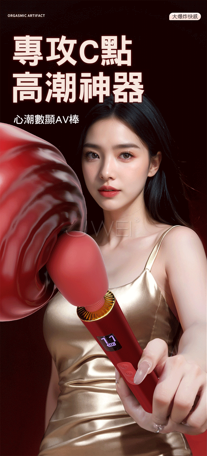 心潮.9頻穿透強震低音靜享360°靈活頭部液晶屏顯AV震動棒