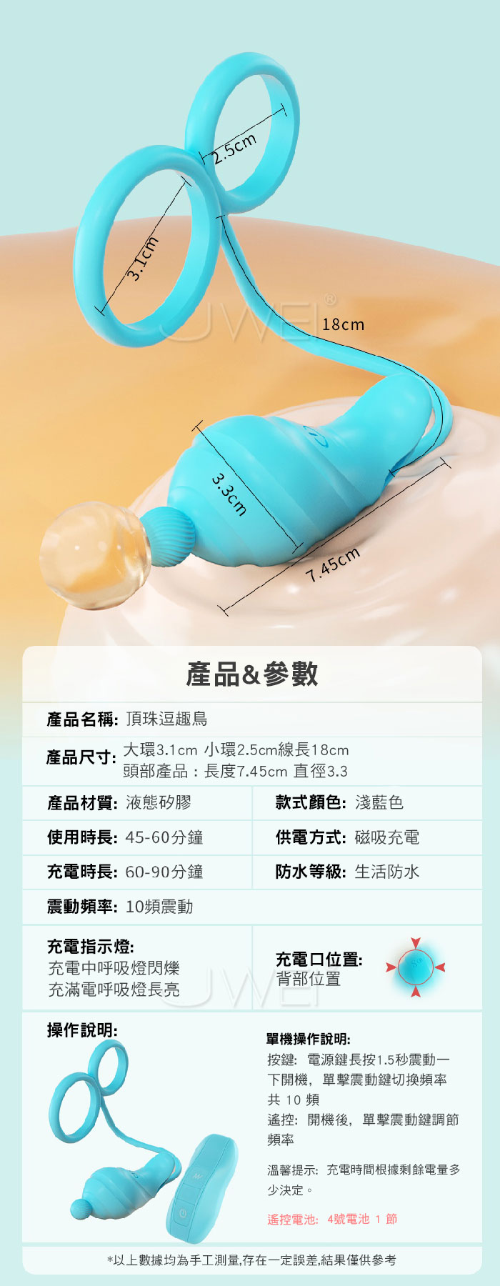 頂珠逗趣鳥.10頻強震大圓珠直頂深處鎖精多功能無線遙控按摩器