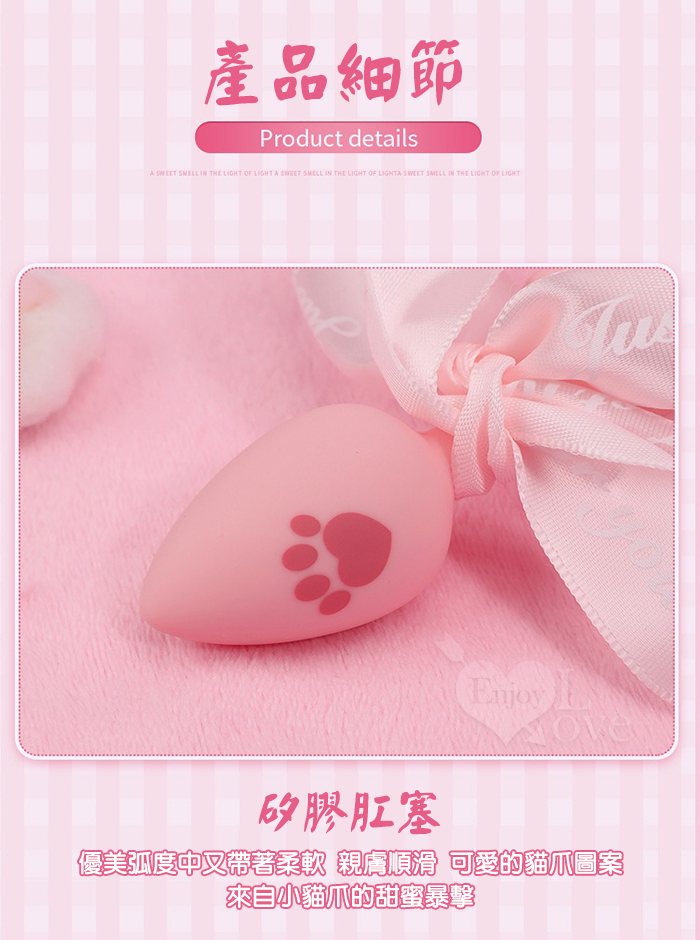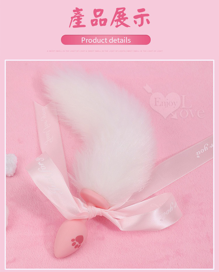 激性扮演 ‧ 蝴蝶結狐狸尾巴 可愛猫爪印親膚矽膠肛塞﹝白色﹞