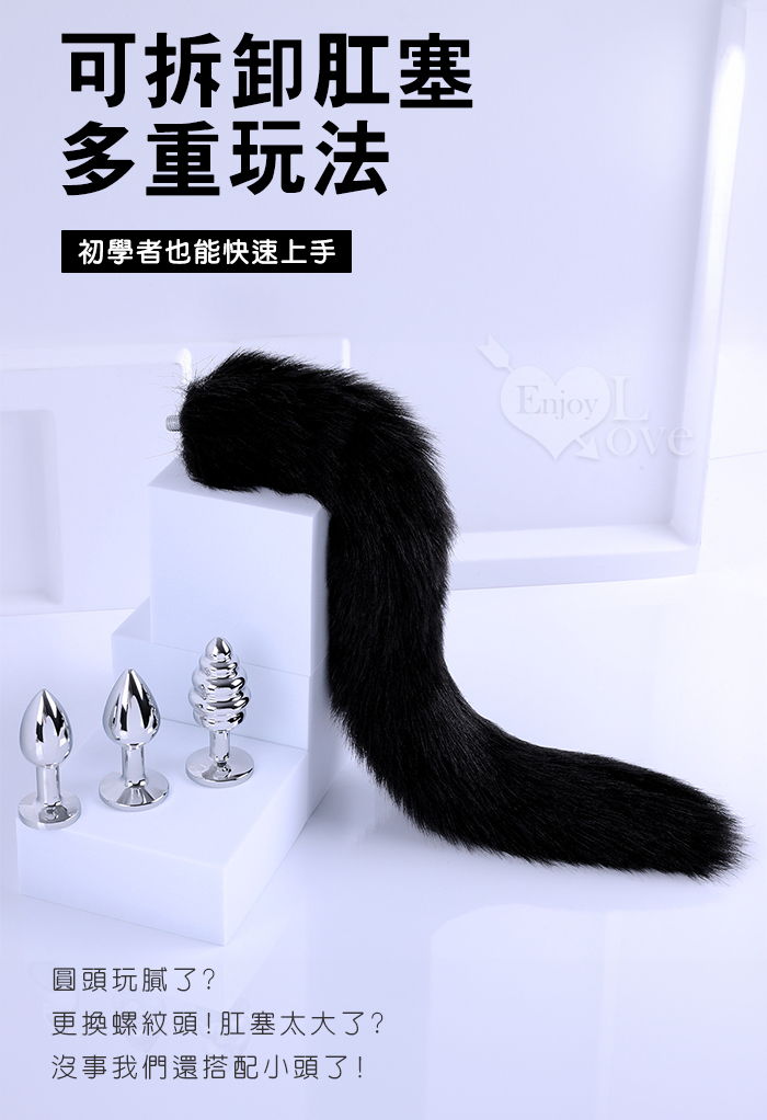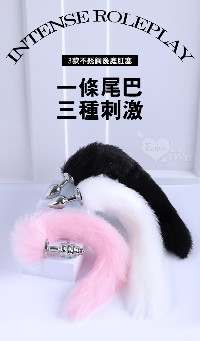 激性扮演狐狸精 ‧ 3款不銹鋼後庭肛塞+純白尾巴毛套裝組﹝可組裝拆卸﹞