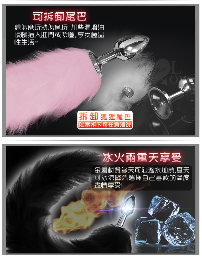 激性扮演狐狸精 ‧ 不銹鋼後庭肛塞+尾巴毛 - 黑﹝S 可組裝拆卸﹞