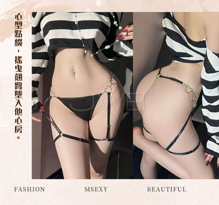 首頁>極夜誘惑.愛心鏈條綴腰吊帶低腰丁字褲【黑網愛心】