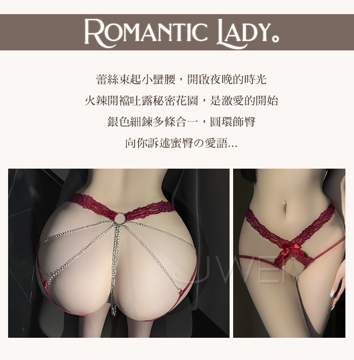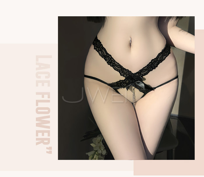 愛鏈之夜.圓環鏈條勒臀純欲蕾絲花邊開檔內褲【黑】