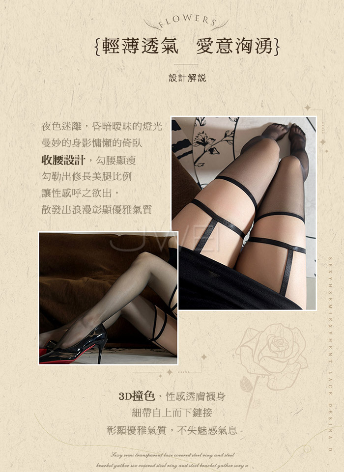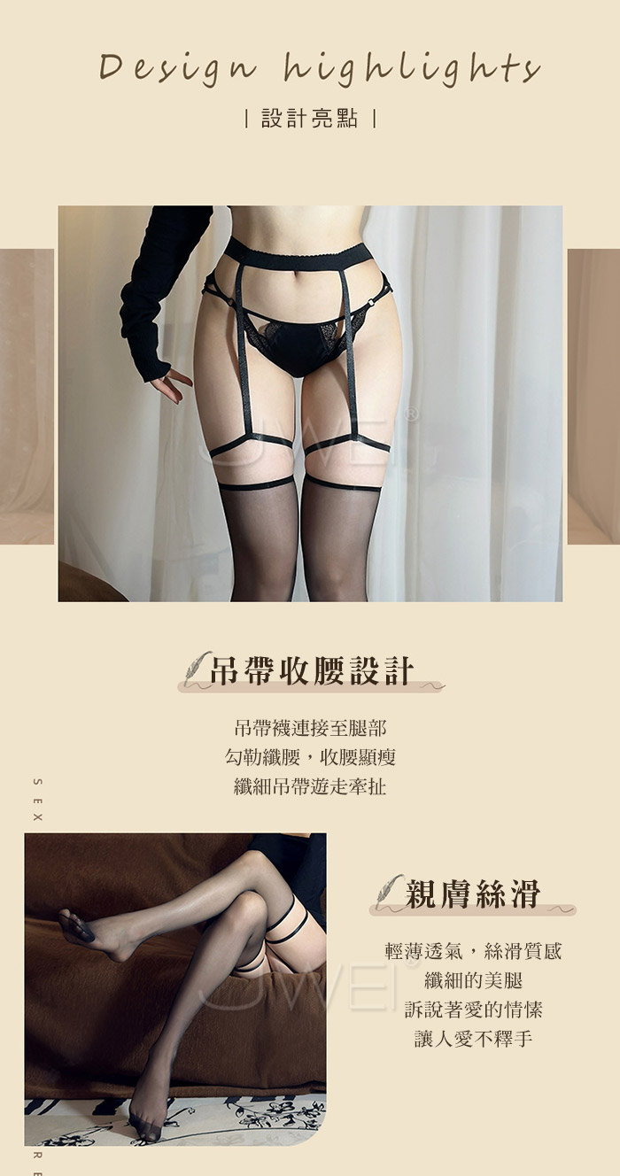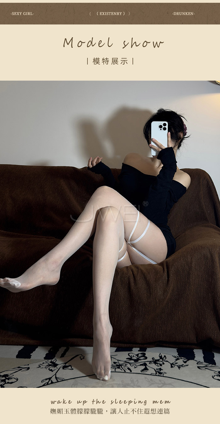 曖昧圓舞曲.純欲一體式吊帶腿環長筒絲襪【黑】