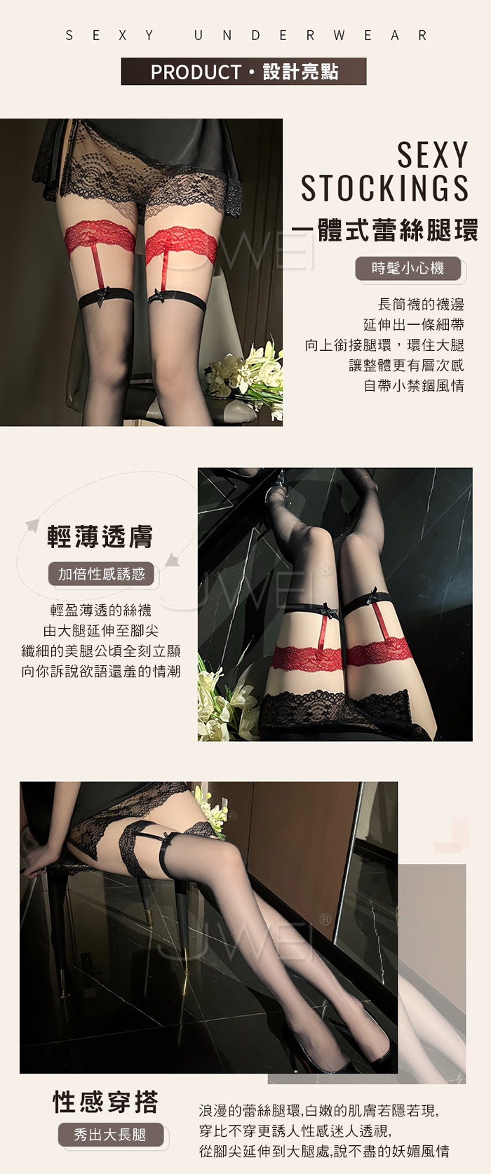 慾情誘惑.法式蕾絲花邊 蝴蝶結腿環長筒過膝絲襪【黑】