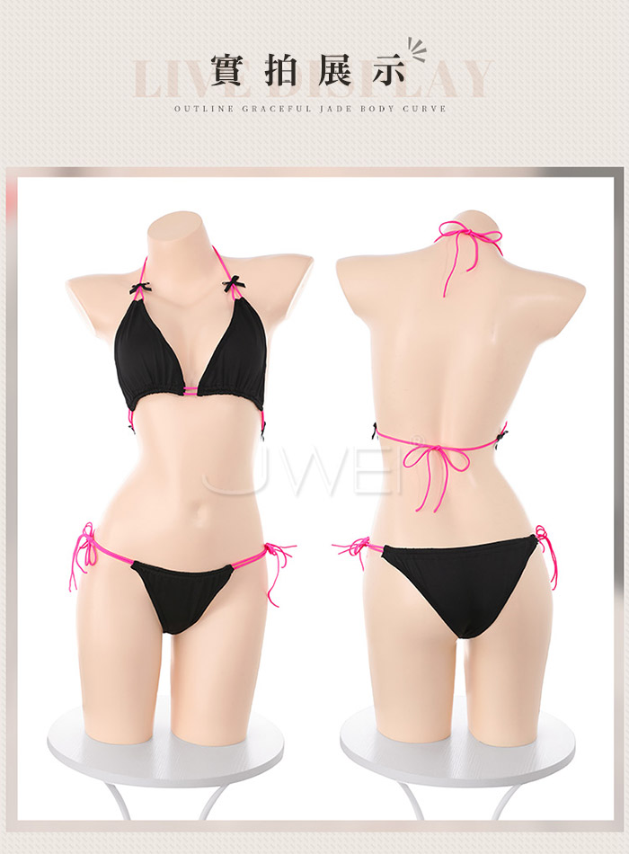 ►您現在的位置:首頁>撞色誘惑.性感辣妹撞色三點式綁帶比基尼【胸罩+內褲】