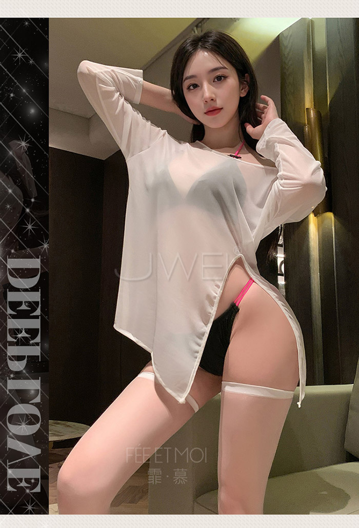 雙色嬌妻.迷迭花樣掛脖頸環美背側高衩網紗睡裙-紅【頸環+連身裙+內褲】