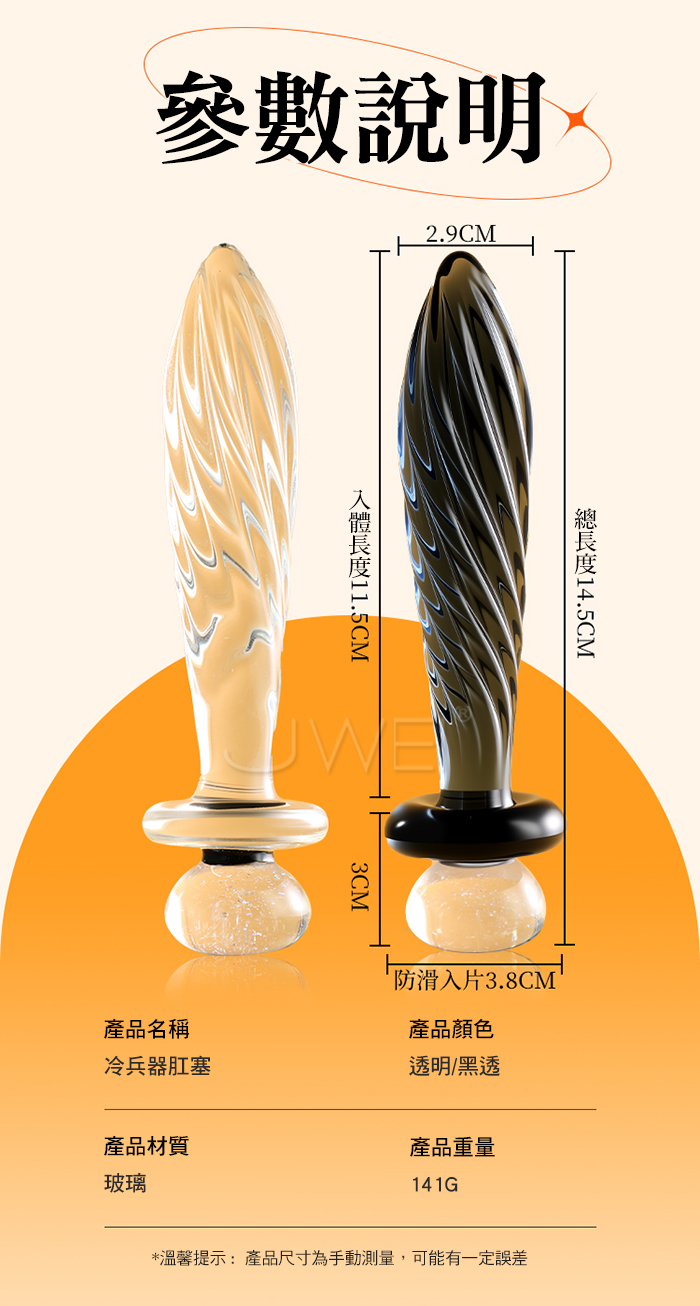 ►您現在的位置:首頁>冷兵器.圓潤尖頭環形螺紋冰火雙體驗玻璃後庭肛塞【透黑】