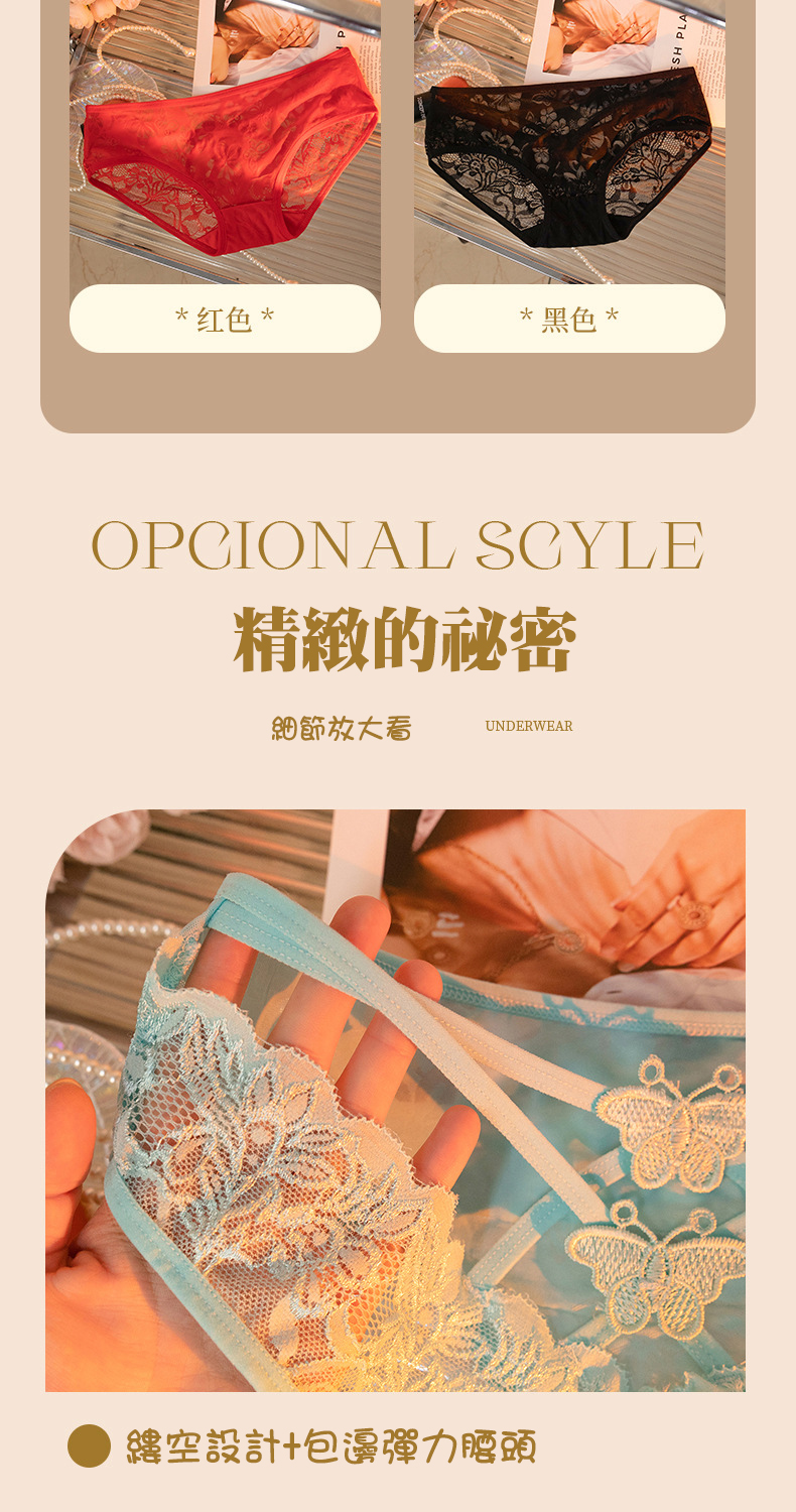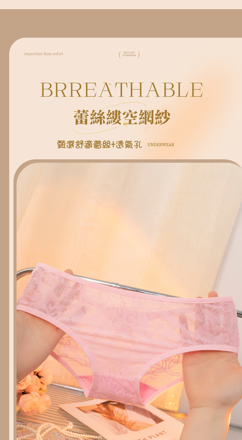 性感屁股蛋蕾絲內褲【L】性感半透網紗內褲 後背鏤空細帶蝴蝶三角褲