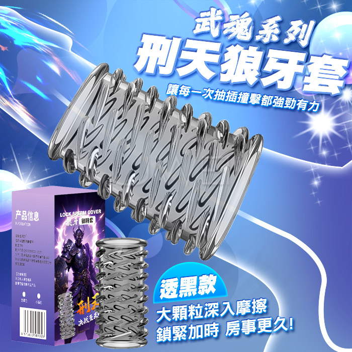 武魂系列 劍豪.波浪突起加粗水晶男士延時高潮套【透黑】