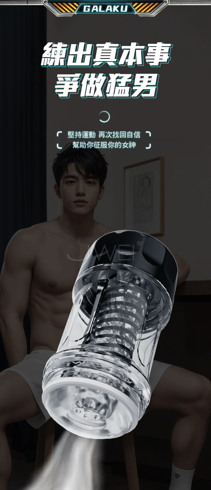 GALAKU.啞鈴旋吸杯 舒潤蘿莉 肉感旋轉手動負壓吮吸降敏飛機杯-新手款【藍色】