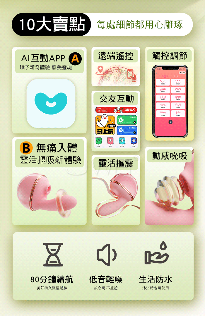 AyaGo SeaCune 小海君 勁Ultra 10頻快感吸吮按摩器 強力靜音可愛小章魚-USB磁吸式座充充電