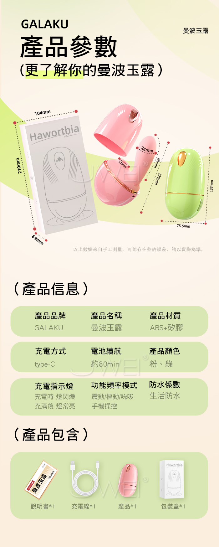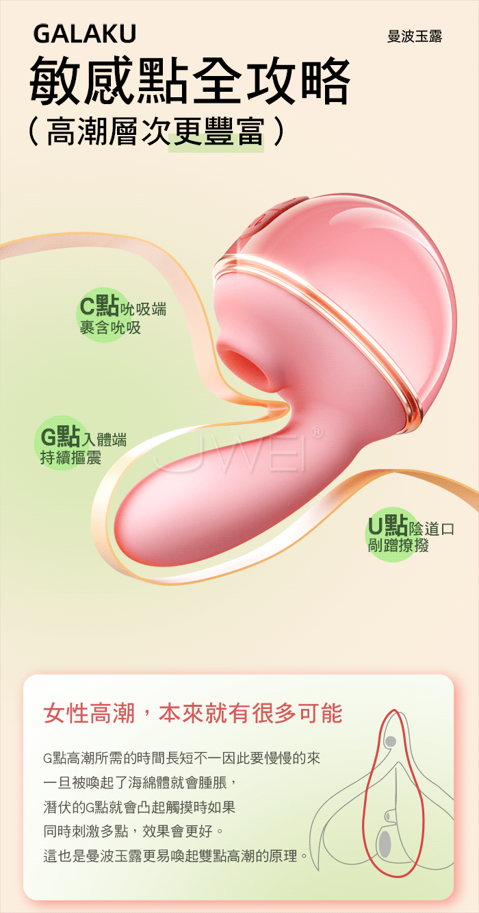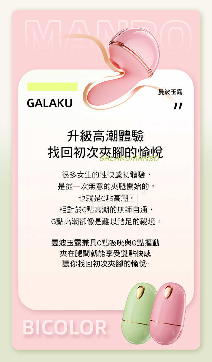 ►您現在的位置:首頁>GALAKU.曼波玉露 10頻靈指摳動+大口吮吸 雙潮喚起智能遠控變頻跳蛋【粉色】