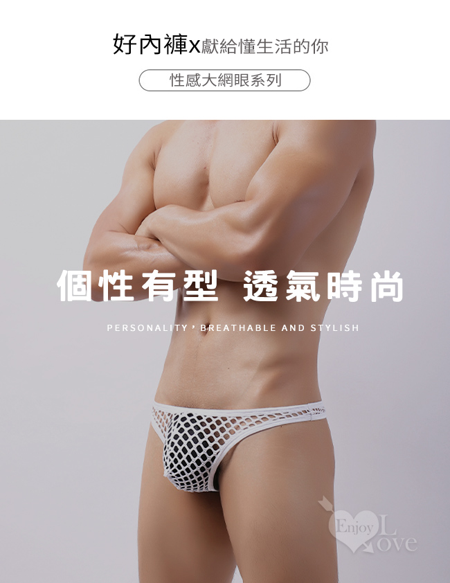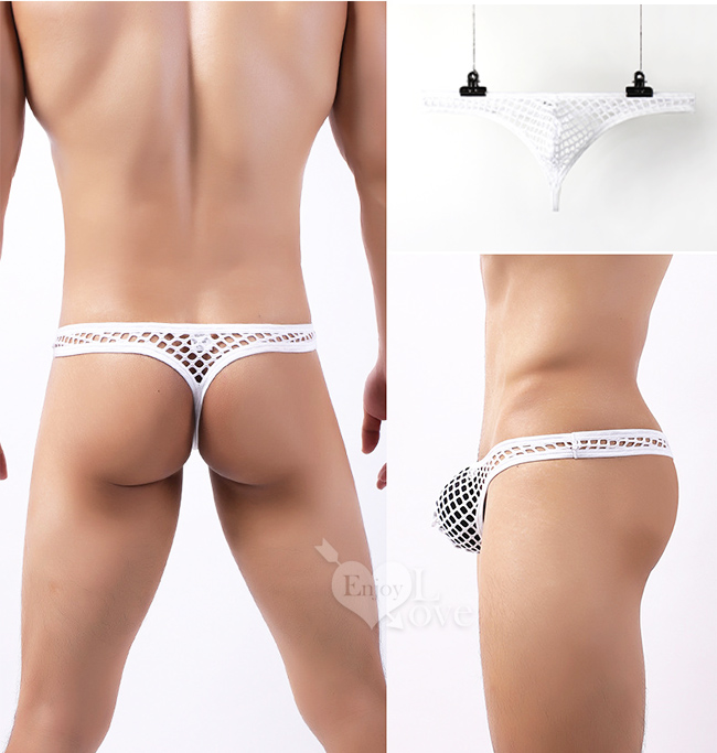 | 《 Enjoy Love 》性感半透大網孔男士丁字褲 - 白﹝L﹞