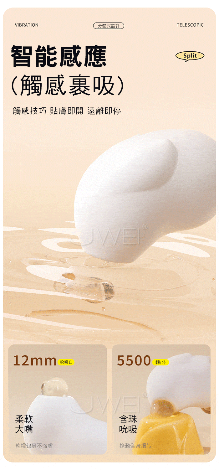 | 謎姬 MizzZee.欲兔.10頻接觸感應裹吸x10頻超伸縮頂震 APP遠控加溫分體式按摩棒