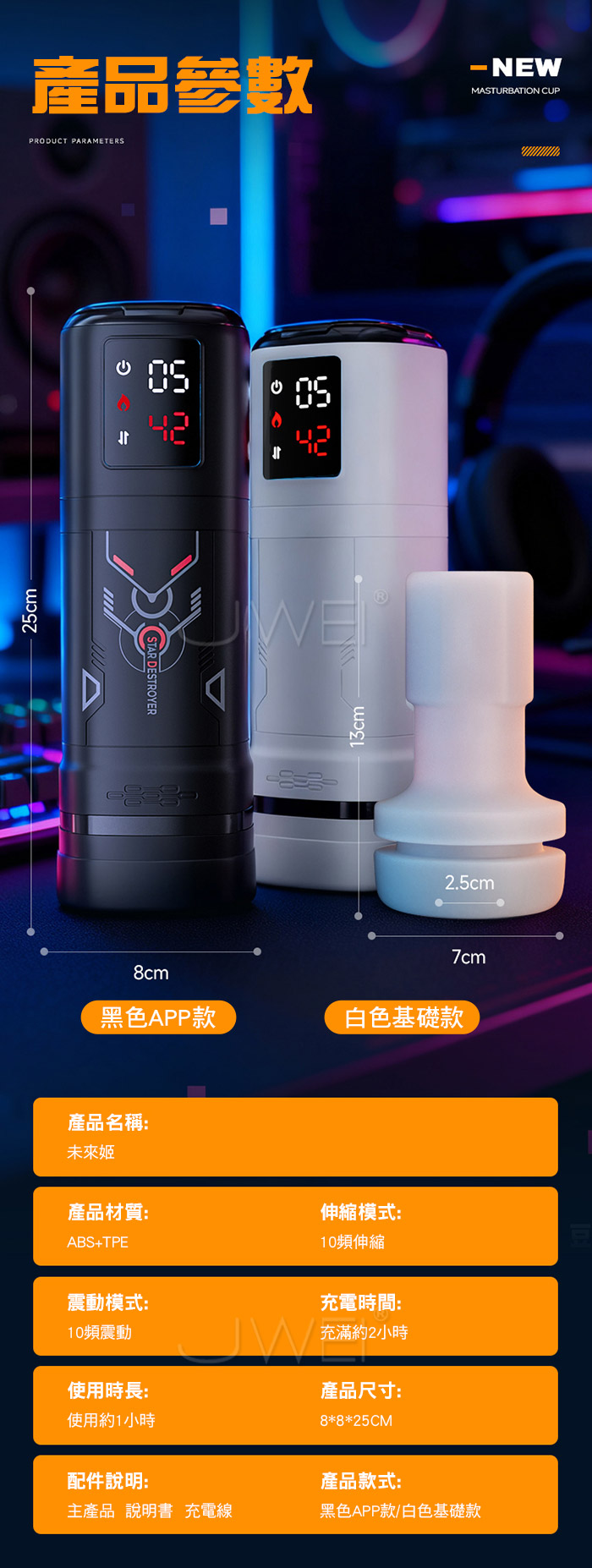 未來姬.10x10段伸縮激顫 4D肉感恆溫加熱屏顯飛機杯【白色基礎款】