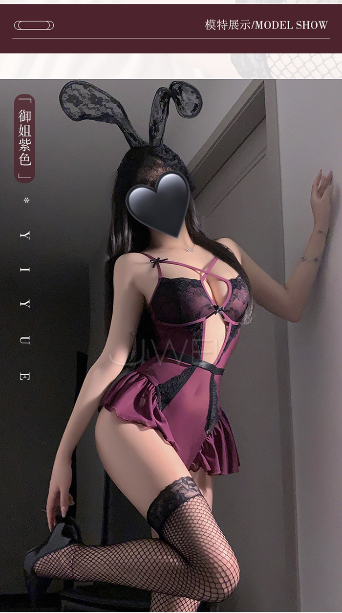 ►您現在的位置:首頁>紫韻蝶惑.純欲交叉挖胸蕾絲雙層包邊小裙襬連體衣