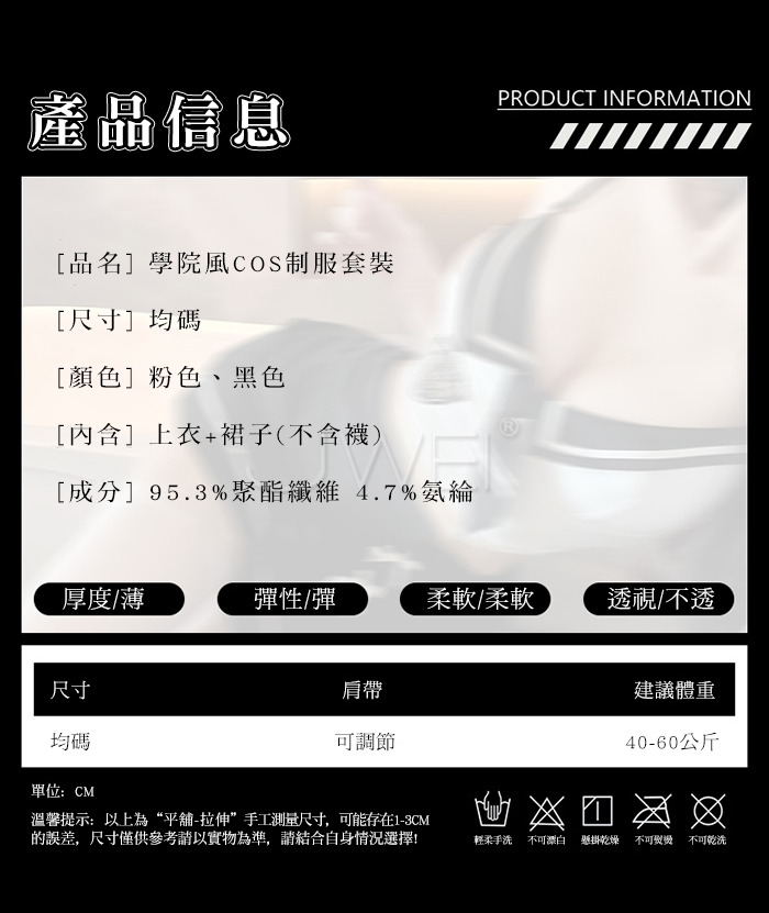 ►您現在的位置:首頁>甜校迷境.純愛撞色制式領帶白褶裙學院系cos套裝【上衣+裙子】黑色