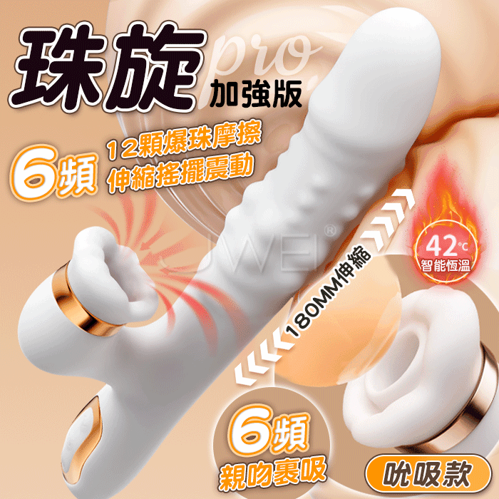 珠旋 PRO.6x6頻12顆爆珠摩擦+伸縮搖擺吮震 溫熱體感高潮按摩棒【吮吸款】