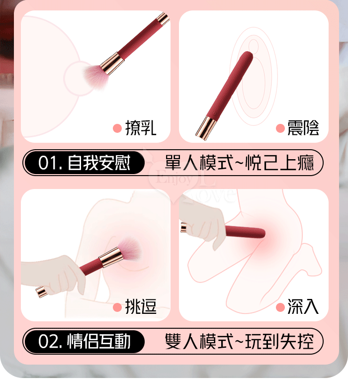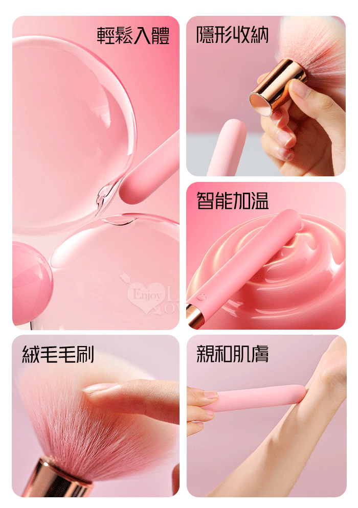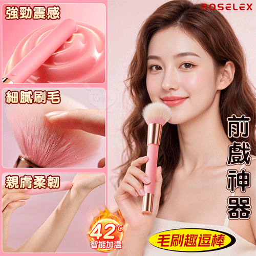 | ROSELEX 勞樂斯 ‧ 趣逗棒(含毛刷)10段高頻震智能加溫按摩棒 強震/酥麻/輕巧/隱蔽/挑逗柔軟毛刷-粉