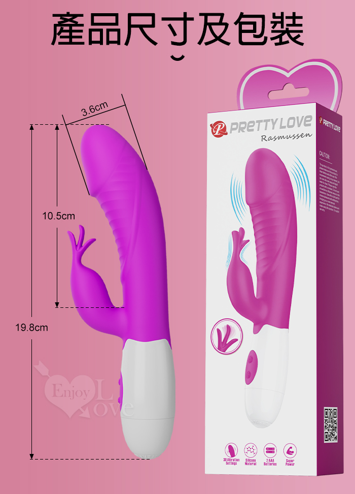 PRETTY LOVE 派蒂菈 ‧ 飛天鵝 雙重強震 內外同享30頻老二頭按摩棒-洋紅 Rasmussen