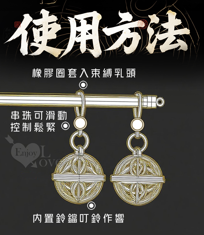 ►您現在的位置:首頁>SM宮鈴乳夾 ‧ 矽膠皮圈鈴鐺雙乳夾~情趣調教玩具﹝一對裝﹞