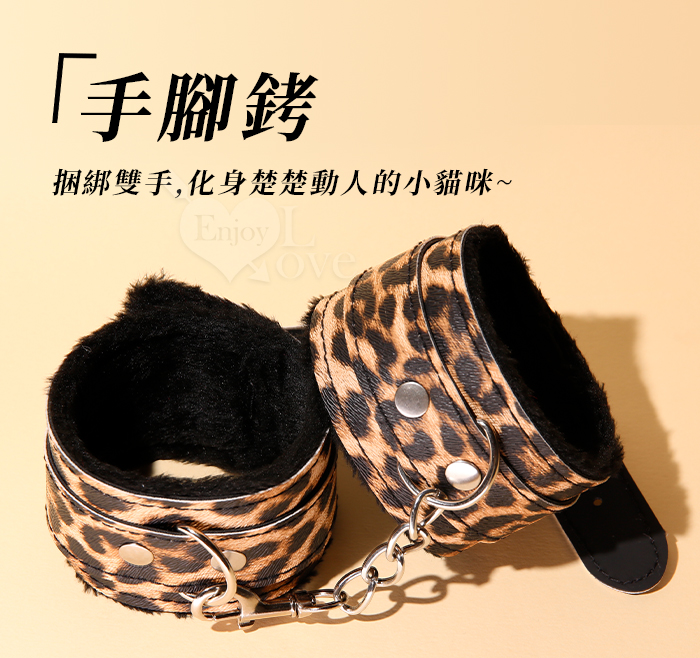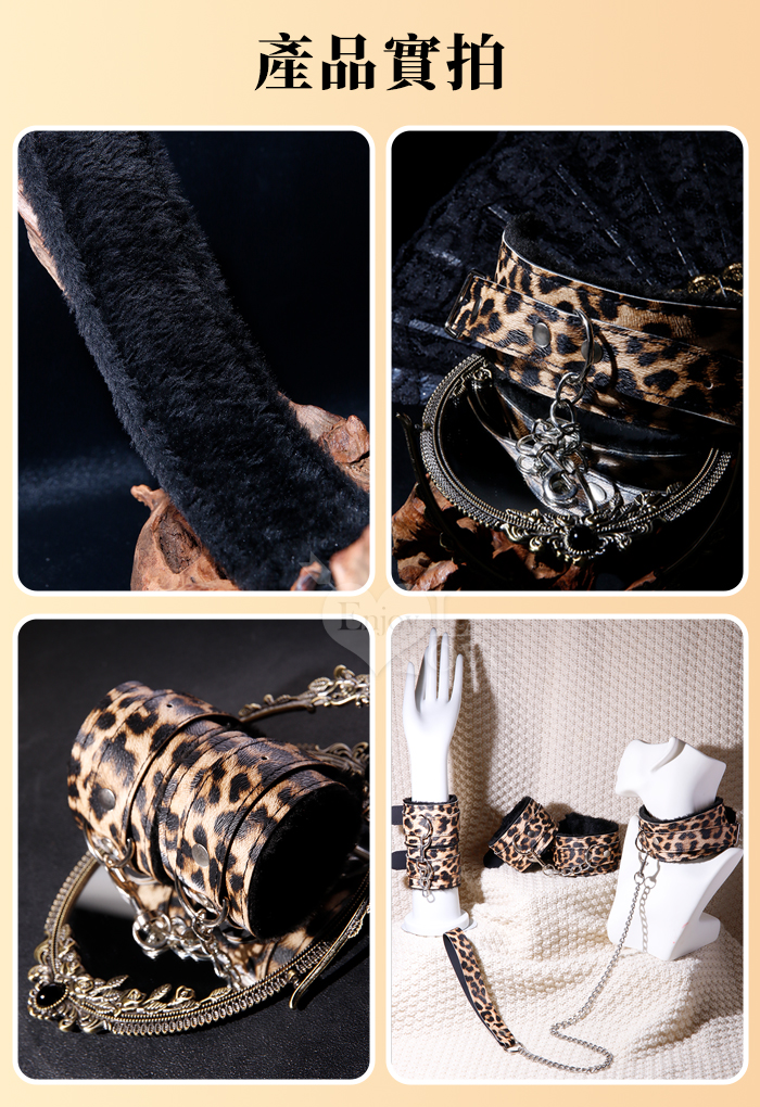 | SM-豹紋套裝4件組 ‧ 男女情趣束縛-溫柔展現野性美﹝外置皮革~內置絨毛﹞