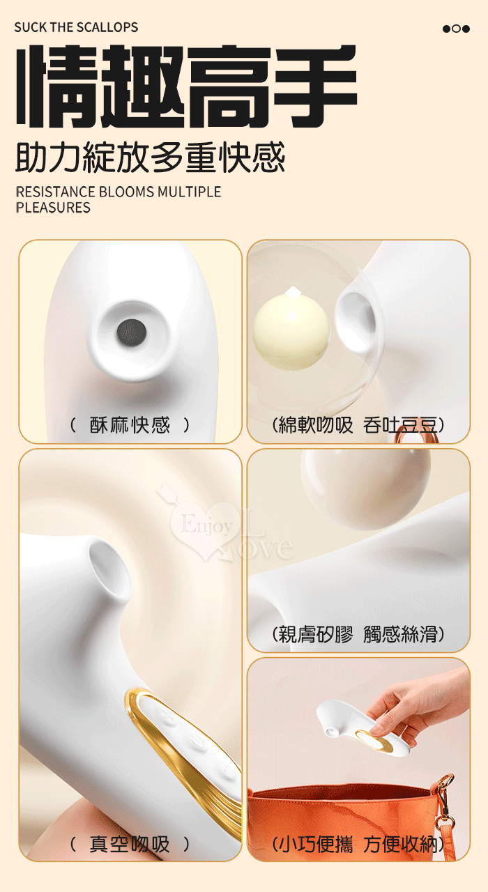 吸歡貝.真空吸吮酥麻快感口愛器﹝5段調速強弱+小巧吻吸+USB充電﹞乳白