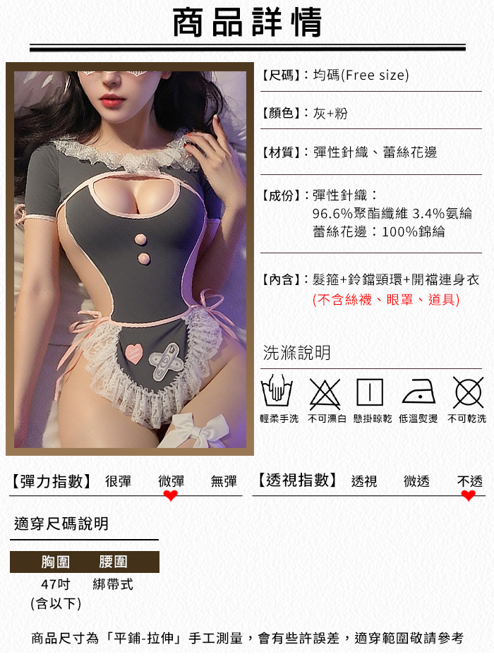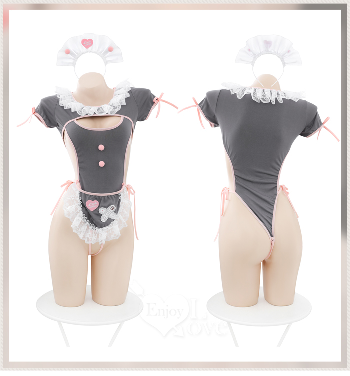 女僕角色扮演服|滾邊蕾絲・兩側挖空・翹臀剪裁開襠連身衣三件組