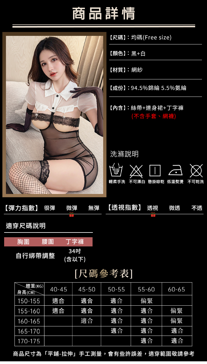 情趣睡衣!立領挖空爆乳蕾絲後綁帶性感薄紗透視連身裙三件組