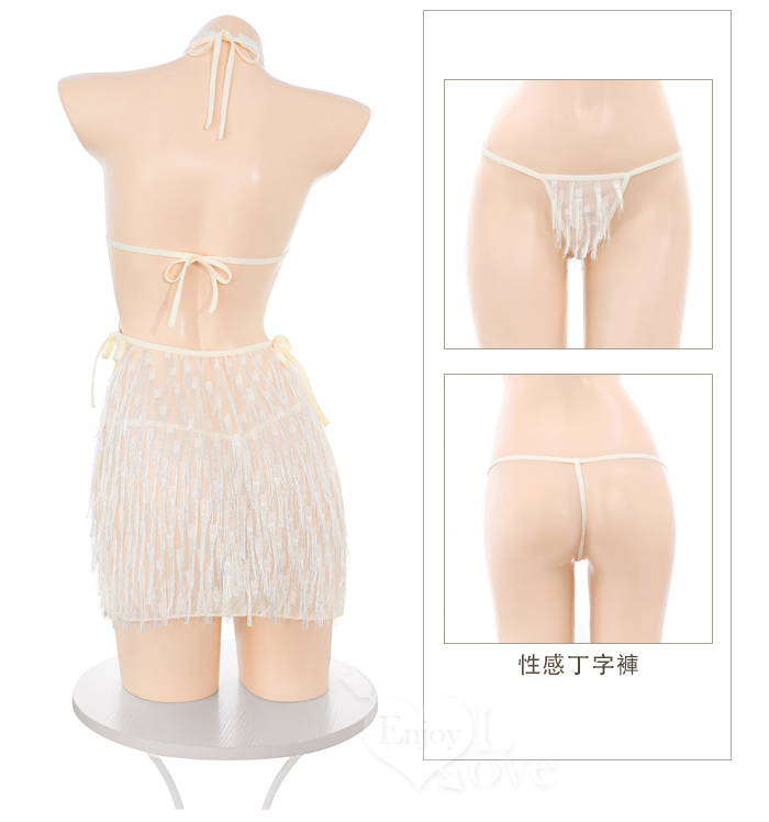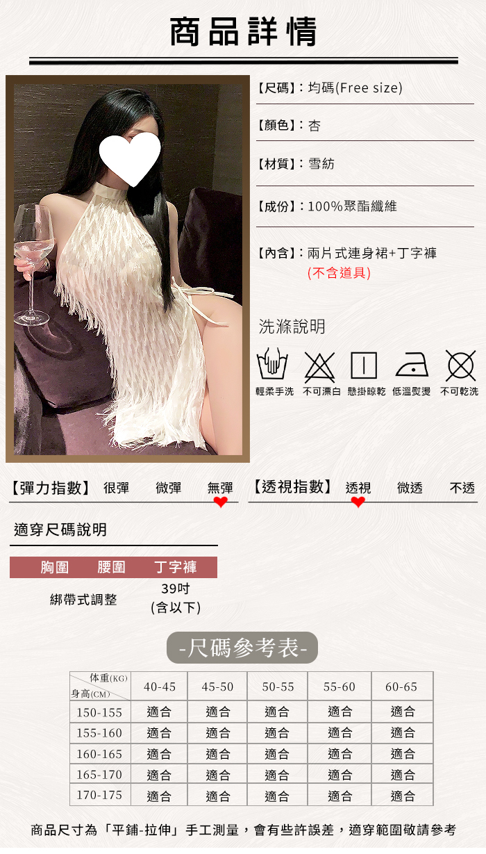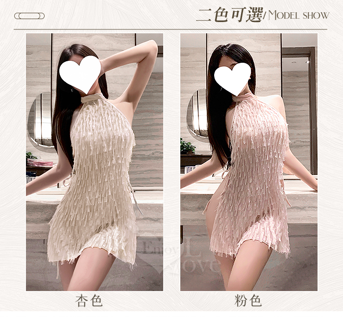 | 情趣夜店派對服!削肩綁脖耀眼流蘇裸背側開衩性感連身裙兩件組﹝杏﹞