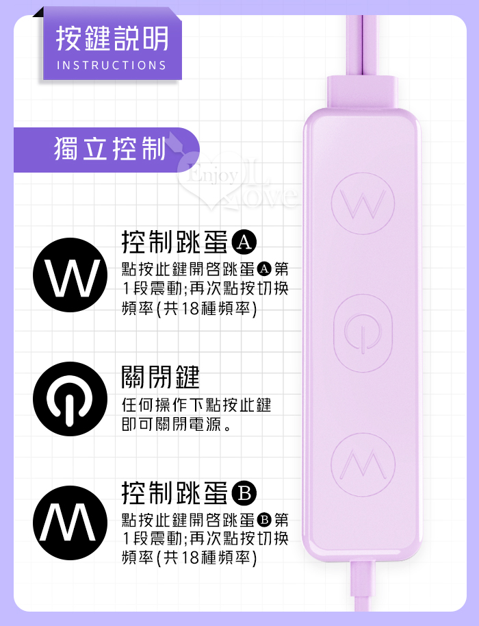 ROSELEX 勞樂斯 ‧ 雙圓跳蛋 18頻調控強震入體雙跳蛋﹝內外刺激+USB直插供電+雙邊可獨立控制﹞淺紫