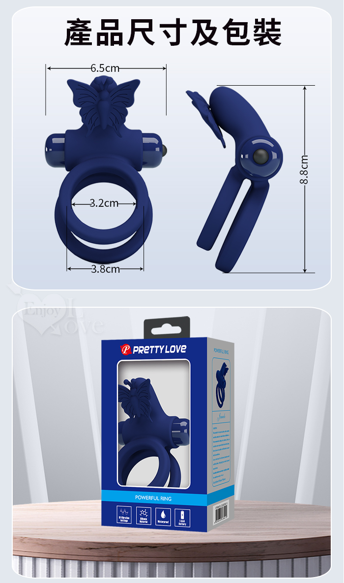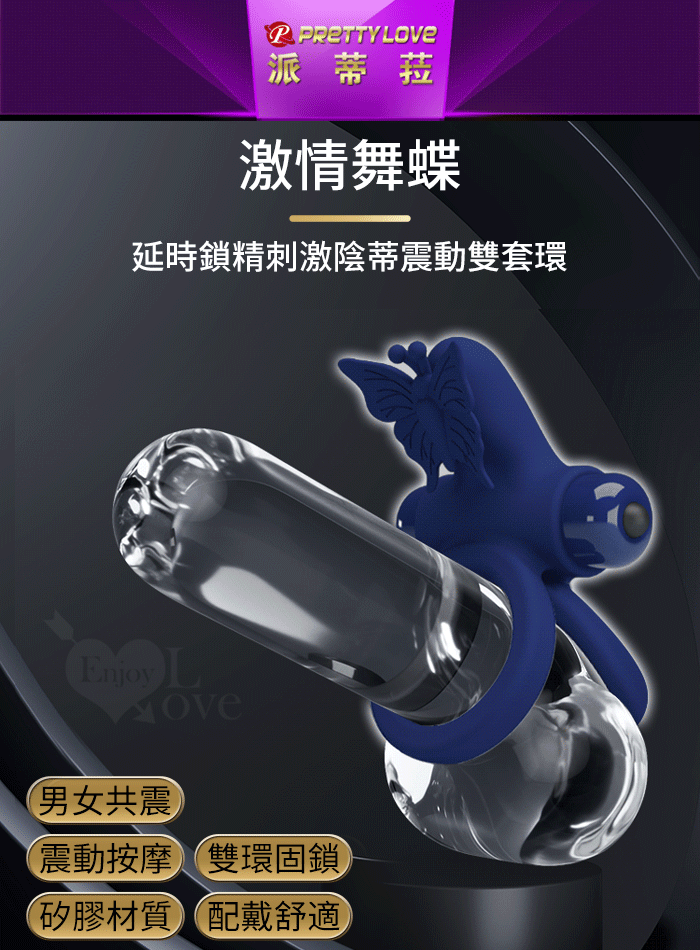 派蒂菈 ‧ 激情舞蝶 延時鎖精刺激陰蒂震動雙套環﹝10頻強震+雙環固精+舞顫陰蒂+舒適矽膠﹞