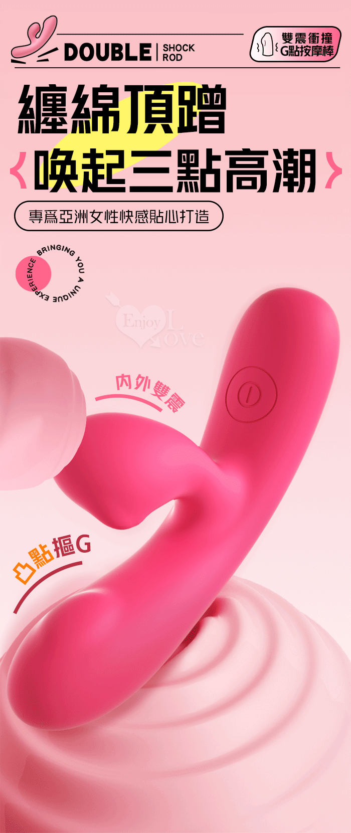 LILO 來樂.DOUBLE 露娜 ‧ 內外雙震10頻撩撥入體內外刺激衝撞G點按摩棒﹝親膚矽膠/獨特凸點/收腰設計/15微翹角度﹞洋紅