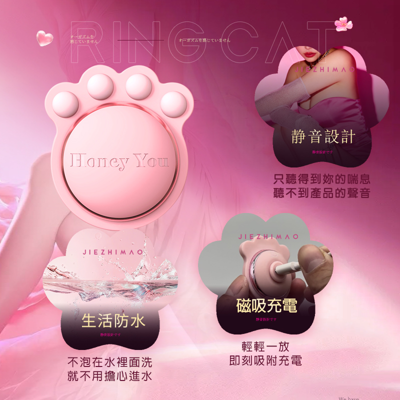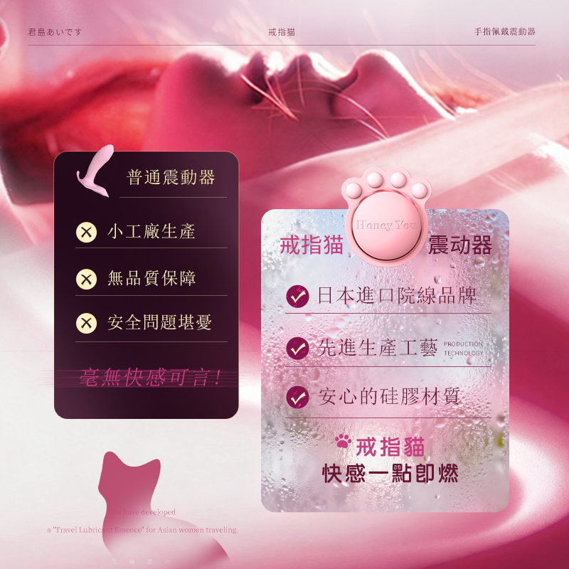君島愛.戒指貓 手指愛愛配戴震動器 小豆刺激器(粉)