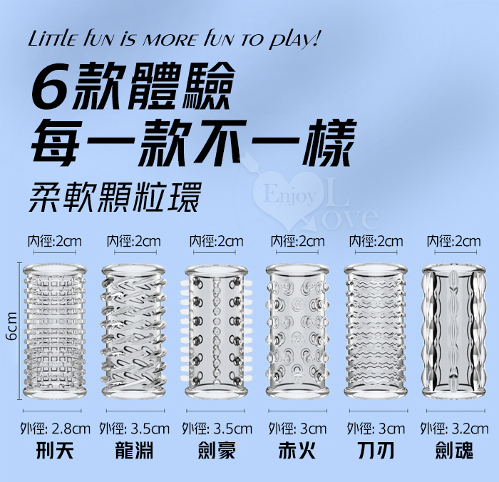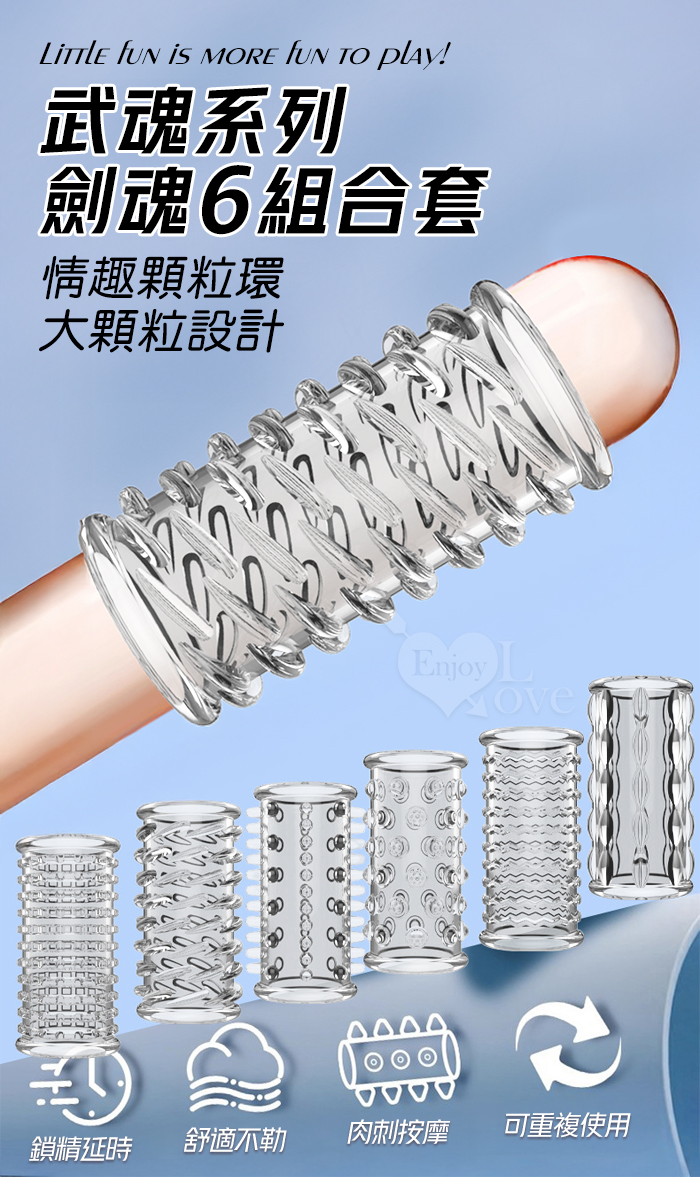 武魂系列.劍魂六組合套~顆粒入珠肉刺環繞鎖精延時陰莖加強環~成人性趣輔助用品-6款體驗裝﹝透明白﹞