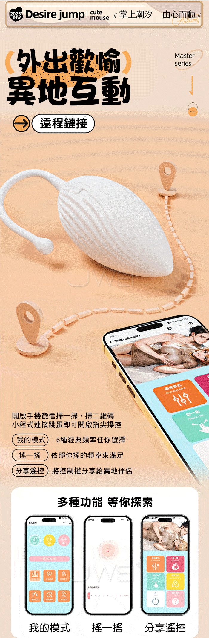 ►您現在的位置:首頁>欲滴.6頻環繞爆震 螺紋剮蹭全域覆蓋 智能遠控情趣跳蛋
