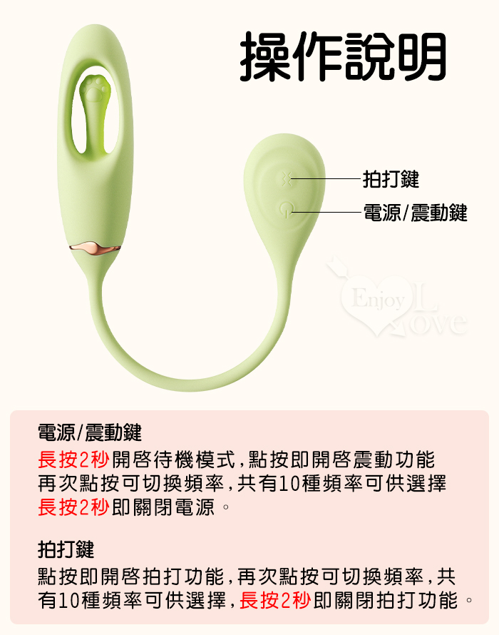 ROSELEX 舒兒 ‧ 全方位拍打撩撥/酥麻爽震 跳蛋按摩器﹝10頻獨立調控/入體強震+內腔拍擊﹞粉