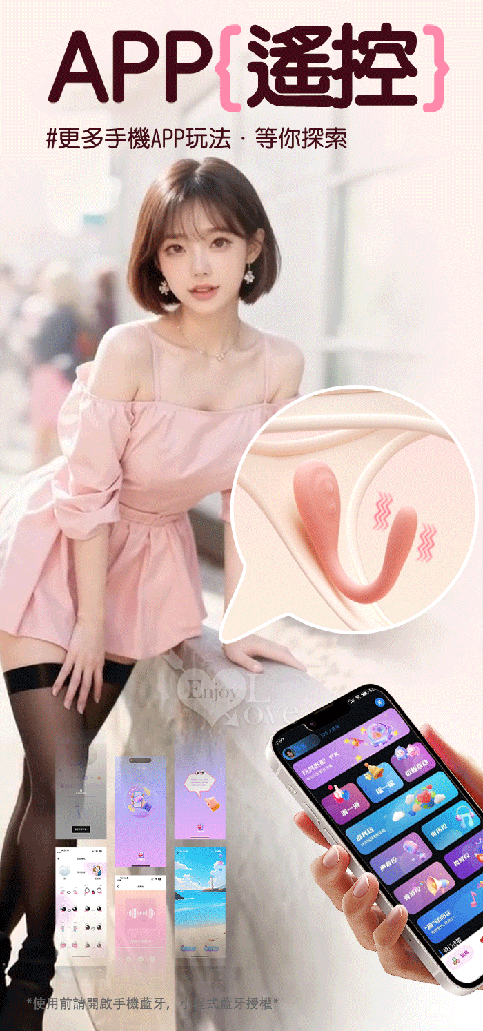 ROSELEX 勞樂斯 ‧ 布歐Mini跳蛋棒 ‧ 輕鬆入體~10頻強震探索G點潮吹/親膚柔軟貼合/穿戴潮玩/超靜音﹝可手機APP遙控-具兩種操控模式﹞粉