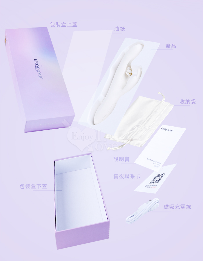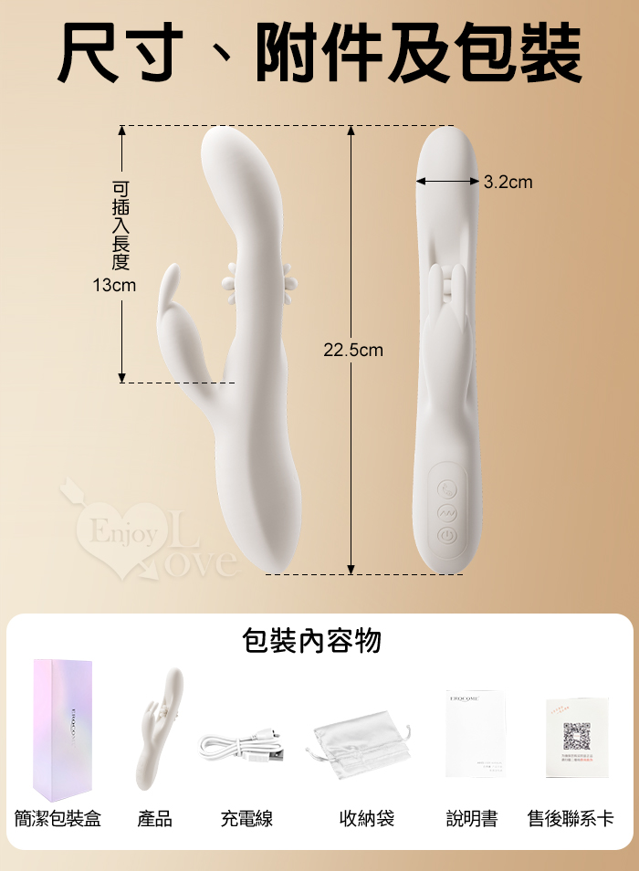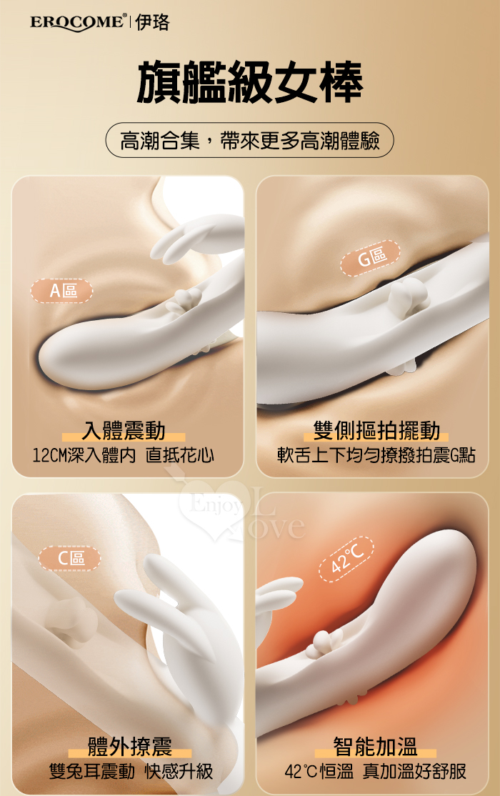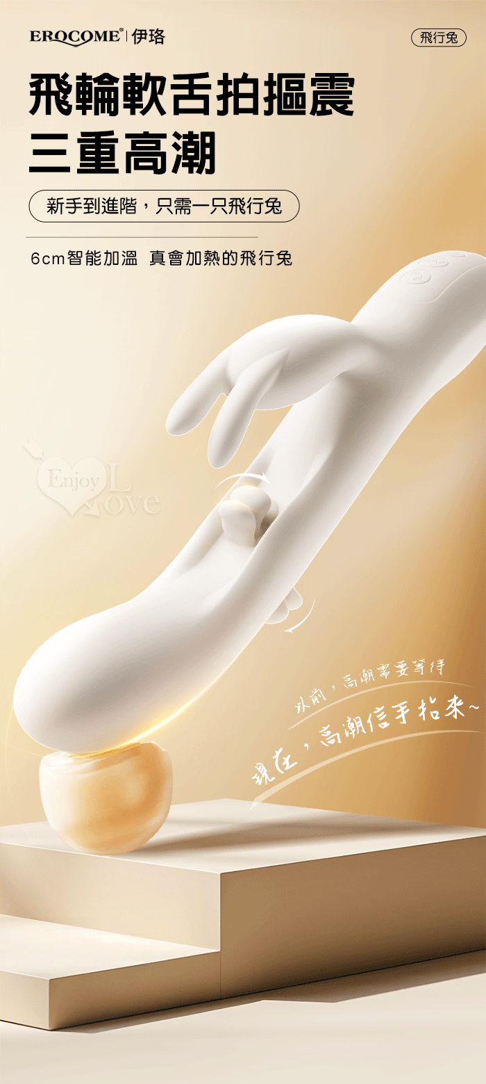 | EROCOME伊珞.Flying Bunny 飛行兔 10x10頻飛輪軟舌兔耳震動拍打雙震加溫3合1按摩棒