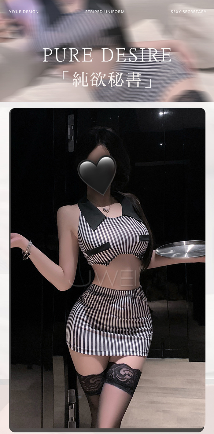 ►您現在的位置:首頁>純欲秘書.條紋裹胸放大胸型露腰美背包臀秘書套裝【上衣+包臀裙+T褲】