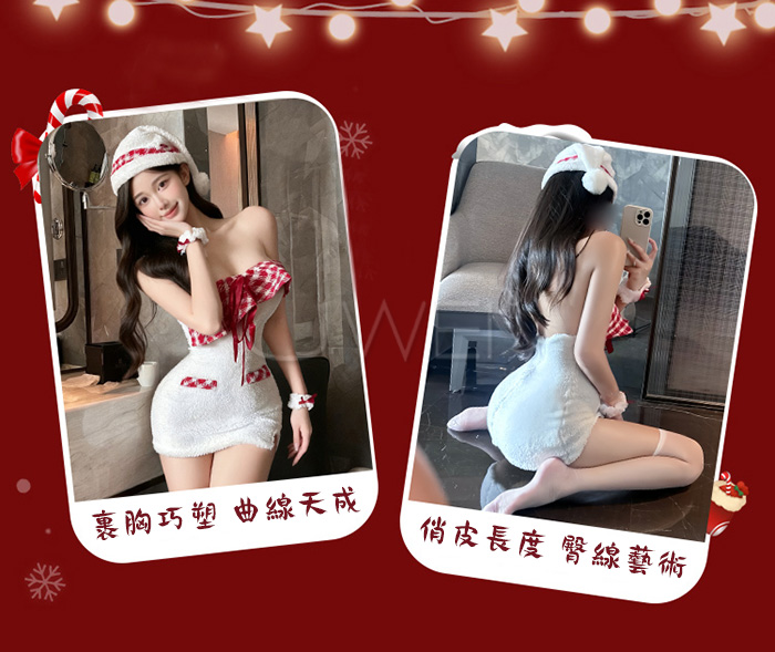 ►您現在的位置:首頁>夢夜覆雪.紅白格紋平口裹胸白色毛絨修身包臀連身裙套裝【帽子+連身裙+手環】