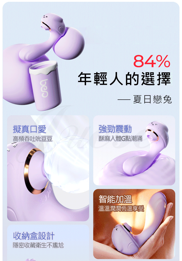 首頁>姬欲.夏日戀兔 9段變頻吮愛激震USB充電智能加溫軟糯震動按摩棒-紫