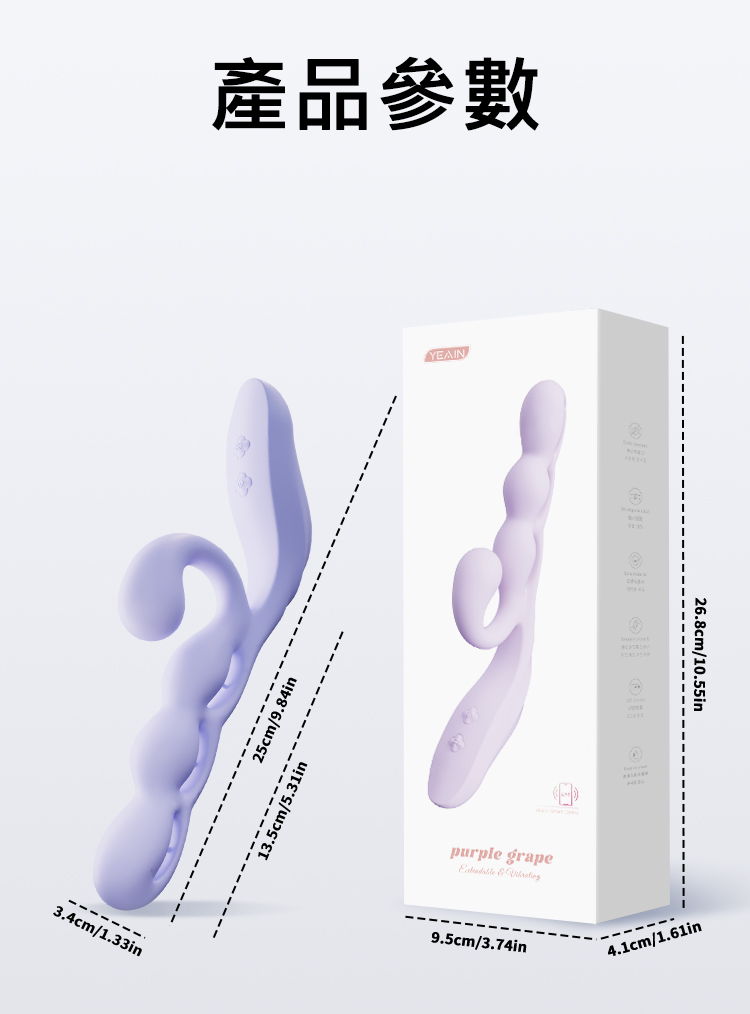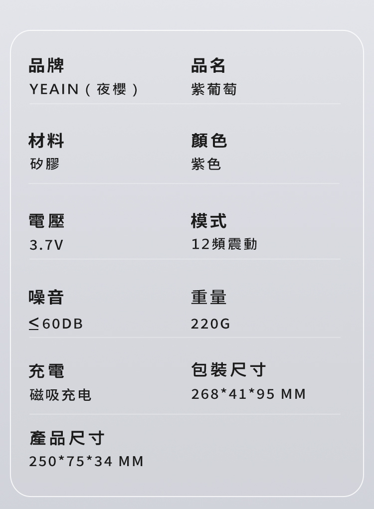| 夜櫻YEAIN 紫葡萄 12段變頻多點觸入USB充電震動按摩棒
