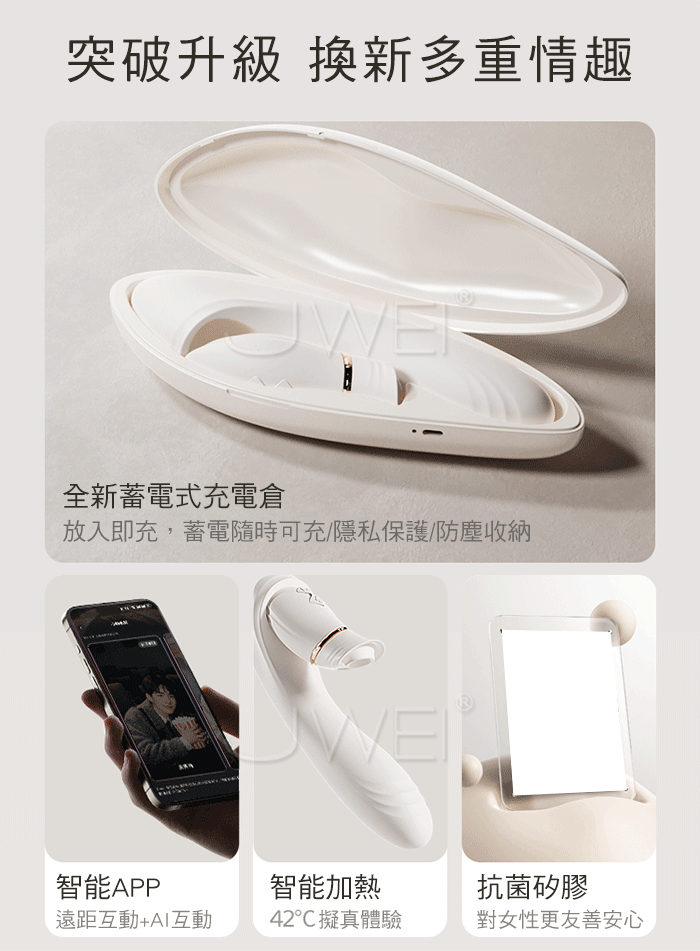 花間吻.6x6頻伸縮強震深吻吮吸 分離式加溫智能遠控按摩棒【基礎款】