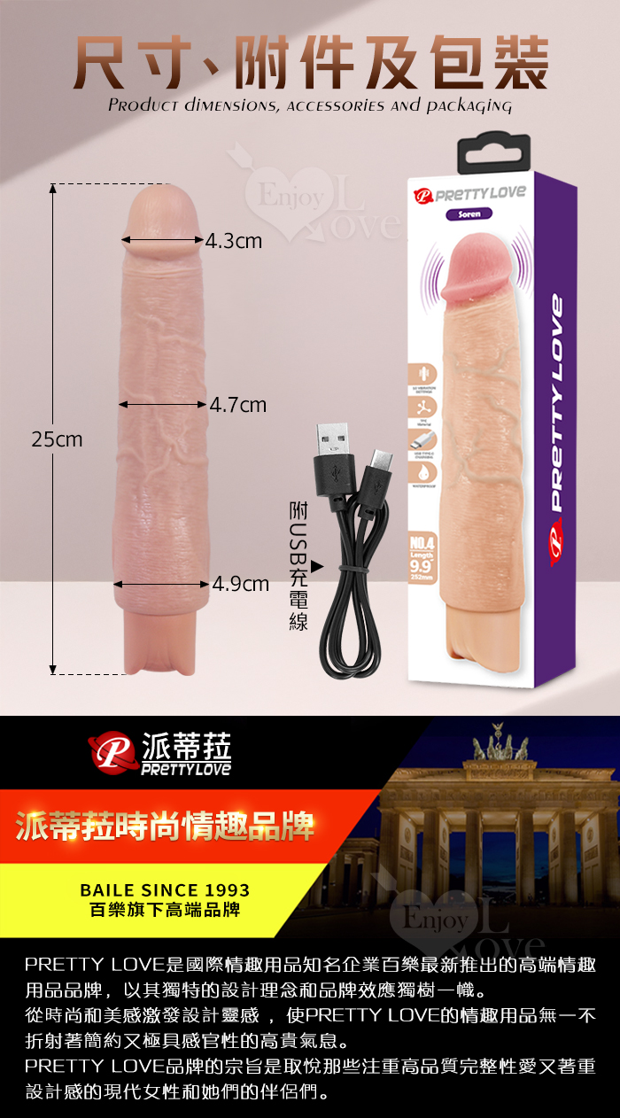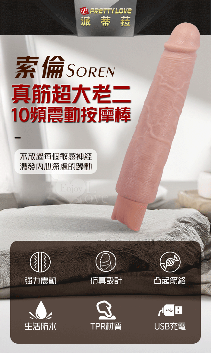 派蒂菈 ‧ Soren 索倫 10段變頻震動 膚色肌仿真筋絡超大老二造型充電按摩棒 NO.4﹝9.9″ 25cm﹞